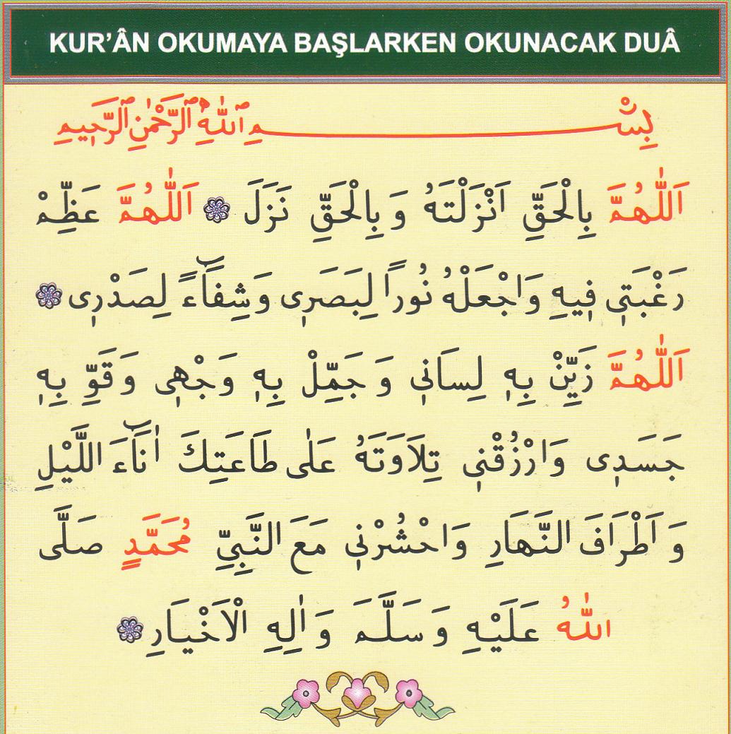 kuran i kerim okumaya baslarken okunacak dua