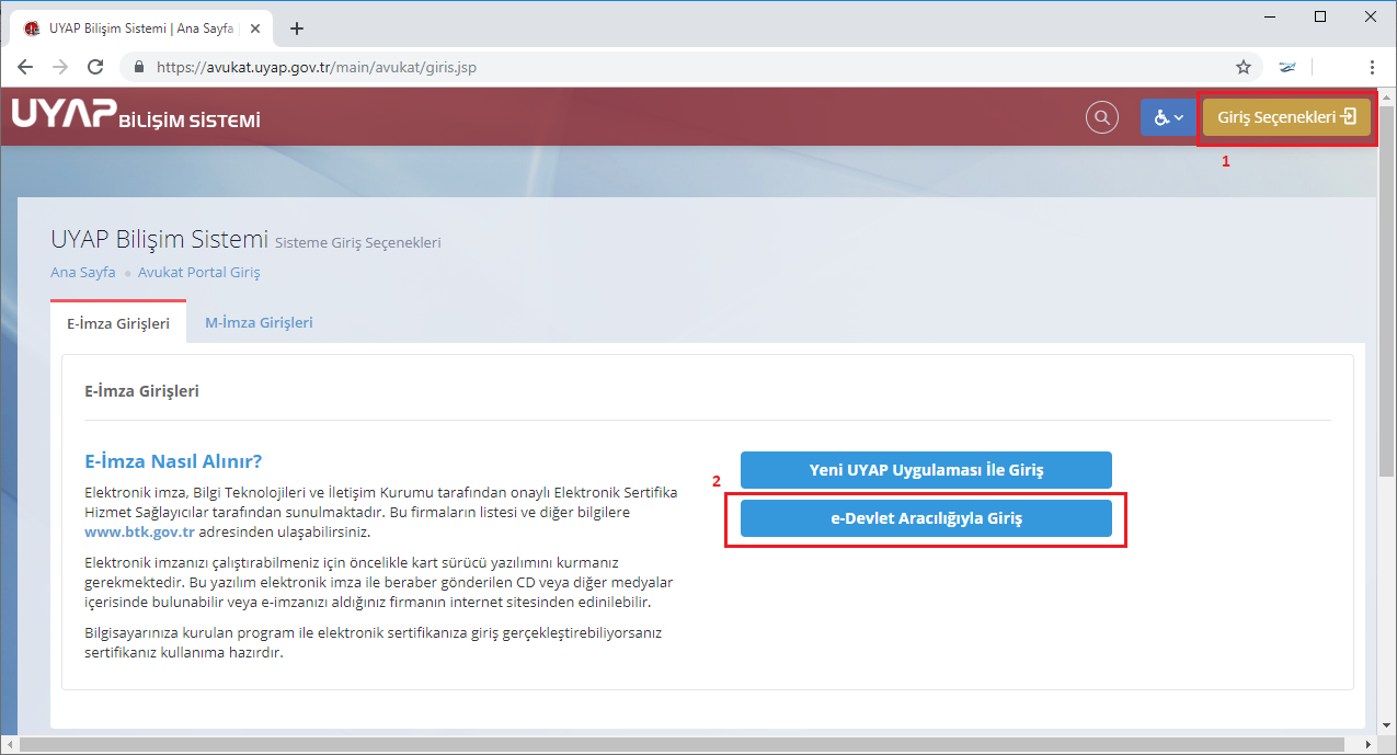 uyap sistemine e devlet araciligi ile giris islemi turkiye barolar birligi